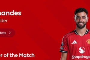破门+造乌龙,英超官方:B费当选曼联2-2伯恩茅斯全场最佳球员