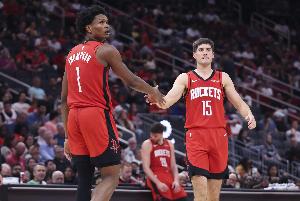 “最初的设想是阿门和杰伦·格林搭档,但你能明显看出阿门和谢泼德未来有潜力成为联盟最佳后场组合。当他们同时在场时,两人的技术特点完美互补,这一点在昨晚的比赛中展现得淋漓尽致。”