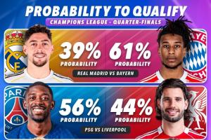 体育资讯03月20日讯 外媒Score90列出了各队晋级四强的概率,拜仁、巴黎、巴萨、阿森纳拥有更高的晋级概率。詹俊发文也谈到了各队。